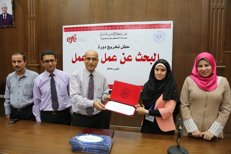 التخطيط والجودة بالتعاون مع المؤسسة الفلسطينية للتعليم من أجل التوظيف تخرج دورة بعنوان "البحث عن عمل هو عمل"