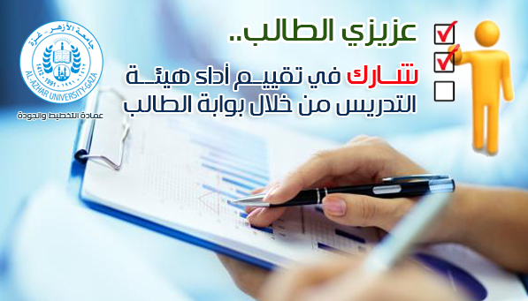 عزيزي الطالب عزيزتي الطالبة : شارك/ي في تقييم أداء هيئة التدريس من خلال بوابة الطالب