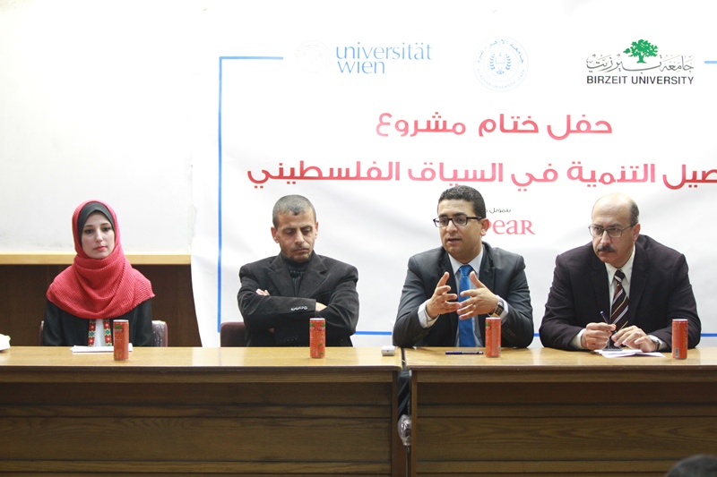 احتفلت جامعة الأزهر-غزة، باختتام مشروع "تأصيل التنمية في السياق الفلسطيني" والمنفذ بالشراكة مع جامعة بيرزيت وجامعة فينا في النمسا، وذلك بتنظيم حفل عقد بقاعة المؤتمرات بالحرم الجامعي الغربي مبنى "الكتيبة"، بحضور الدكتور مازن حمادة نائب رئيس الجامعة للشئون الإدارية والمالية، والدكتور علي أبو زيد عميد التخطيط والجودة بالجامعة، والأستاذ غسان أبو حطب مدير مركز دراسات التنمية في جامعة بيرزيت، وعدد من المدربين والمحاضرين بالمشروع، ولفيف من أعضاء الهيئة التدريسية بالجامعة والطلبة المشاركين في المشروع، ويُتـوج هذا الحفل ثلاثة أعوام من العمل الحثيث الهادف إلى رفع مستوى الوعي في ميدان التنمية، ومحاولة جادة لتسليط الضوء عليها من جوانب مختلفة والبحث عن سبل فاعلة لتأسيس جيل قادر على تصويب المسار التنموي وتطوير الأدوات في سبيل تحقيق الأهداف الوطنية.