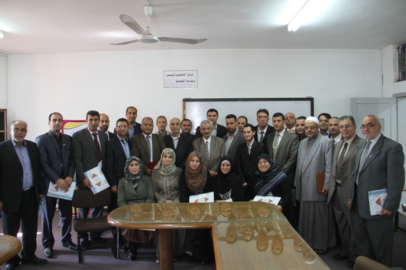 نظمت عمادة التخطيط والجودة لقاءً مفتوحاً مع المحاضرين غير المتفرغين بالجامعة، بحضور الأستاذ الدكتور سامي مصلح نائب الرئيس للشئون الأكاديمية، والدكتور محمود عكاشة عميد التخطيط والجودة، وذلك خلال فعاليات ختام الدورة التدريبية الخاصة بأعضاء هيئة التدريس غير المتفرغين بالجامعة ضمن برنامج بناء قدرات الأكاديميين الذي تنفذه عمادة التخطيط والجودة. واستعرض الأستاذ الدكتور مصلح جهود إدارة الجامعة الرامية إلى تأمين فرص التعليم الجامعي النوعي للطلبة خاصة في ظل الظروف الصعبة التي يعيشها شعبنا بعد الحرب الإجرامية الأخيرة والتي لم تسلم منها مرافق الجامعة، مؤكداً على دعم الجامعة لخطة عمل عمادة التخطيط والجودة .