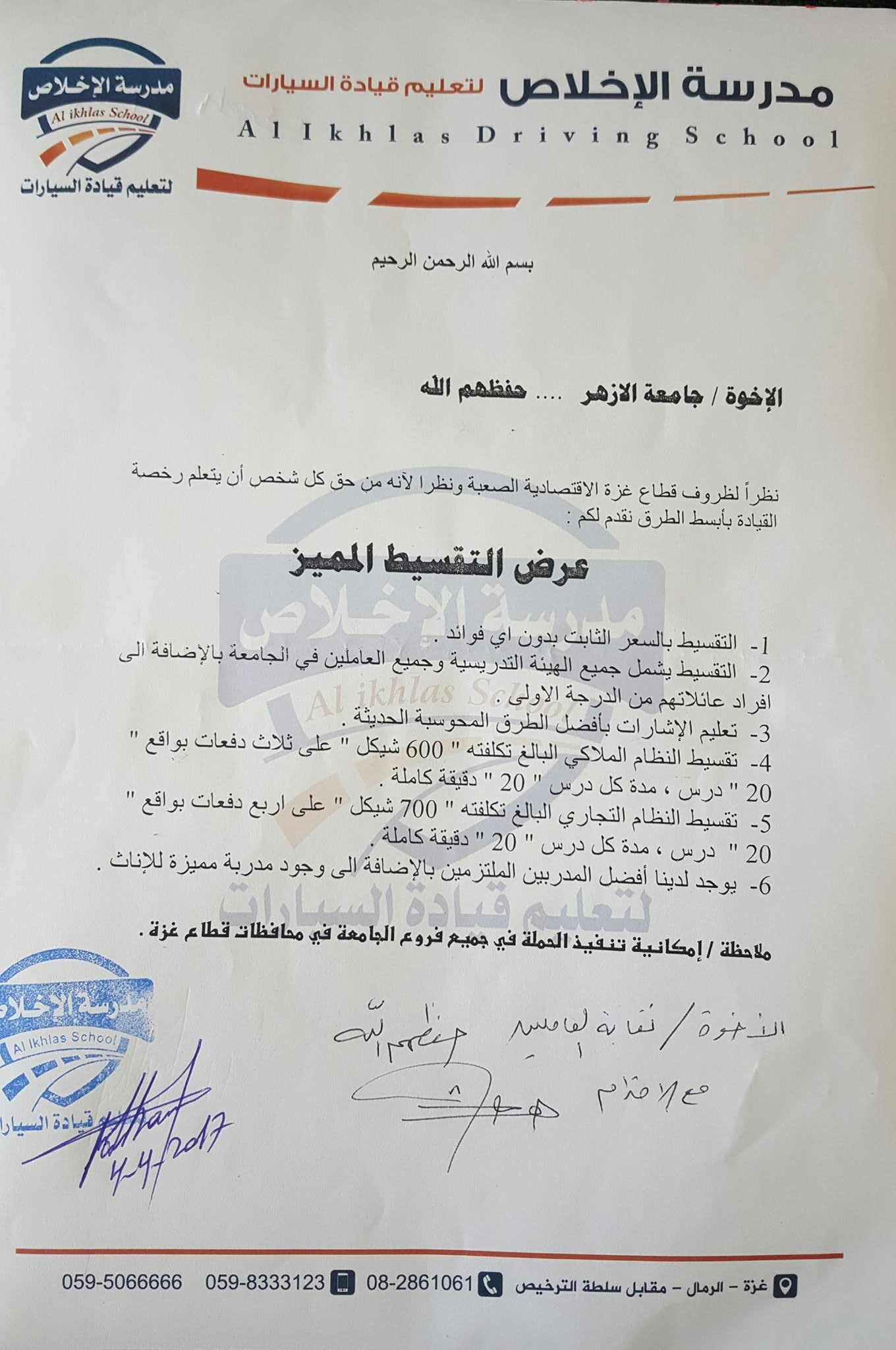 عرض من مدرسة الاخلاص لتعليم قيادة السيارات