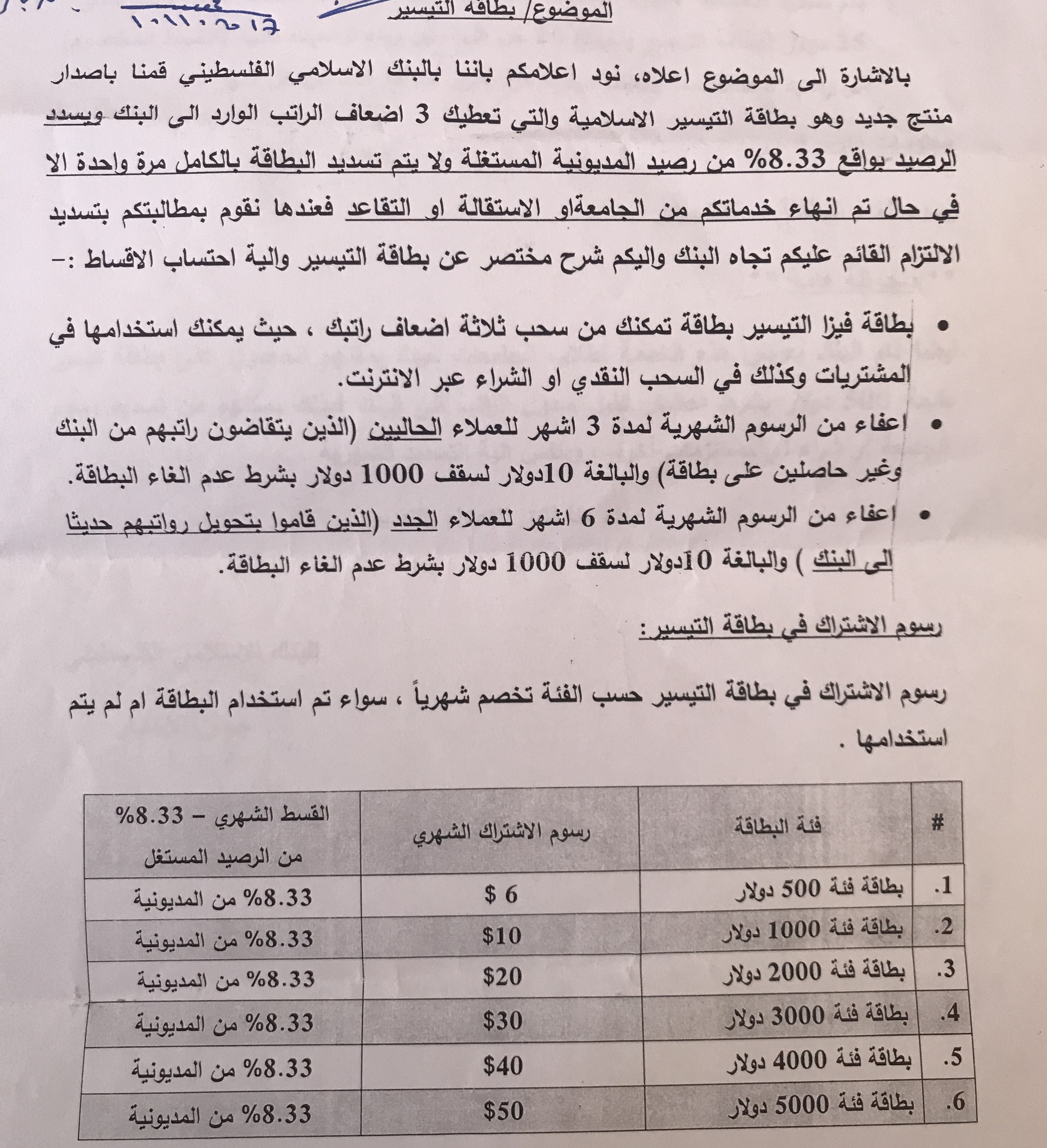 بطاقة التيسير من البنك الاسلامي الفلسطيني
