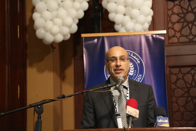 The ceremony, which was held in Al Mashtal Hotel, was attended the member of Executive Committee of the PLO Prof. Dr. Riyad Hassan El Khoudary, Dr. Abdullah Al-Afranji - Governor of Gaza, PLC Member Dr. Ahmed Abu Houli, Prof.Dr. Sami Muslih- Vice President for Academic Affairs, Prof. Dr. Ali An Najar- Vice President for Administrative and Financial Affairs, Dean of the Faculty of Dentistry Dr. Mohamed Megdad , Mr. Sa'eb Samour- Deputy Director of the Palestinian Islamic Bank, Dr. Sami Harb - Director of the General Dentistry in the Ministry of Health and a number of AUG council members,Mr. Sa'eb Samour- Deputy Director of the Palestinian Islamic Bank, Dr. Sami Harb - Director of the General Dentistry in the Ministry of Health and a number of AUG trustees , faculty members , AUG council members.