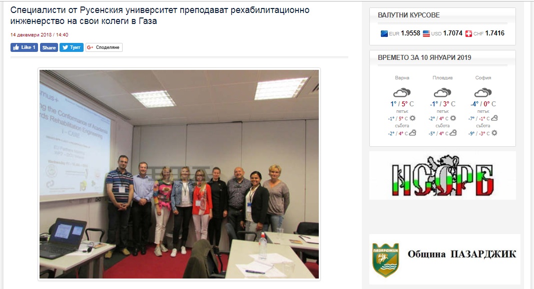 Teachers from the University of Rousse teach rehabilitation engineering to colleagues in Gaza on the i-CARE project. This is reported by the high school in the Danubian town.