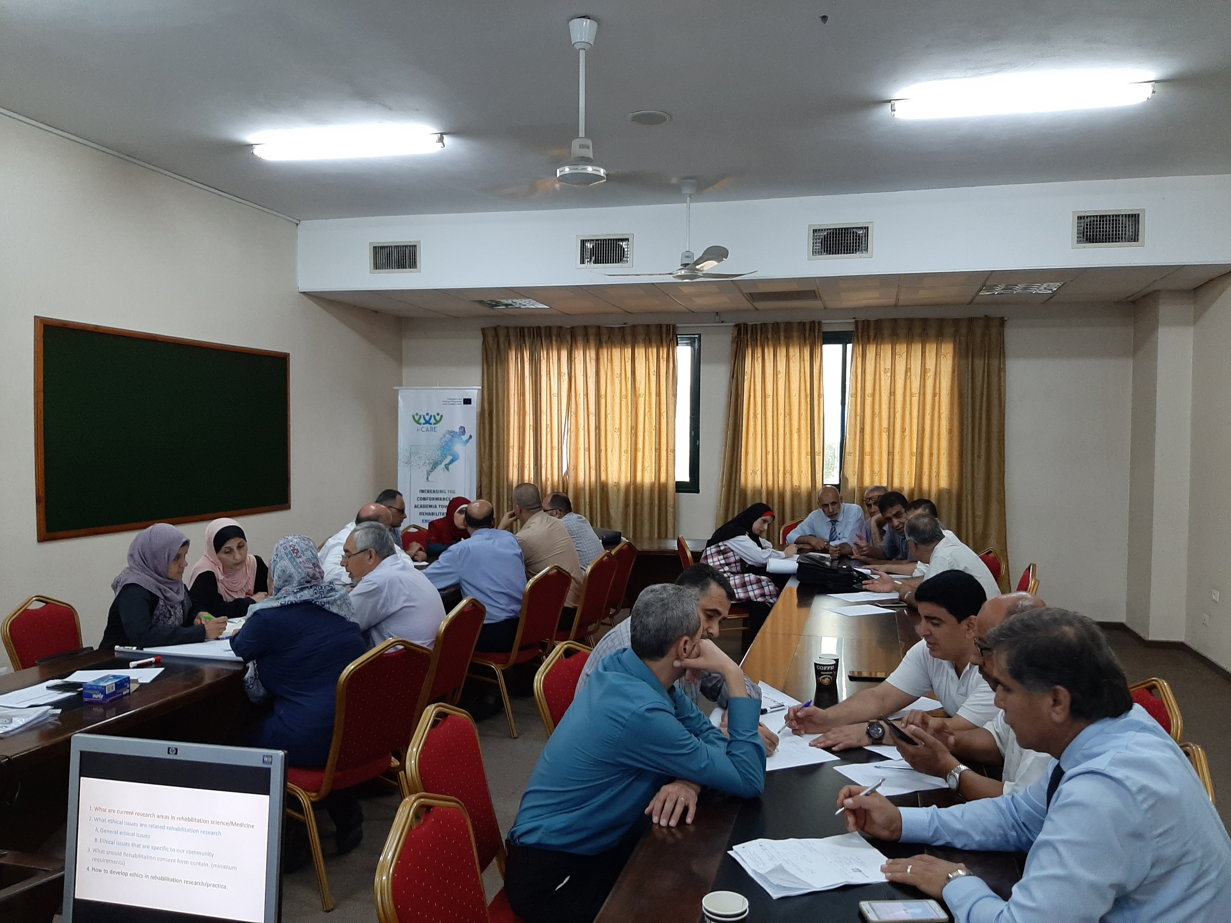 i-CARE project organized rehabilitation ethics workshop for academics and professionals in Gaza, this workshop part of peer to peer training aimed to share knowledge and experience among the local experts and academics in the rehabilitation field.