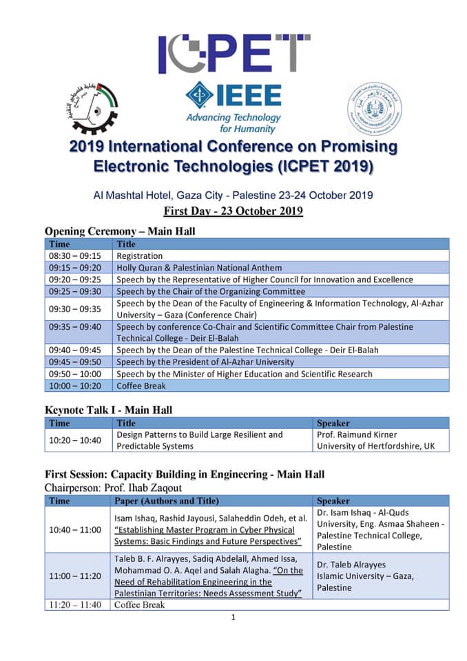 International conference on promising electronic technologies ICPET 2019