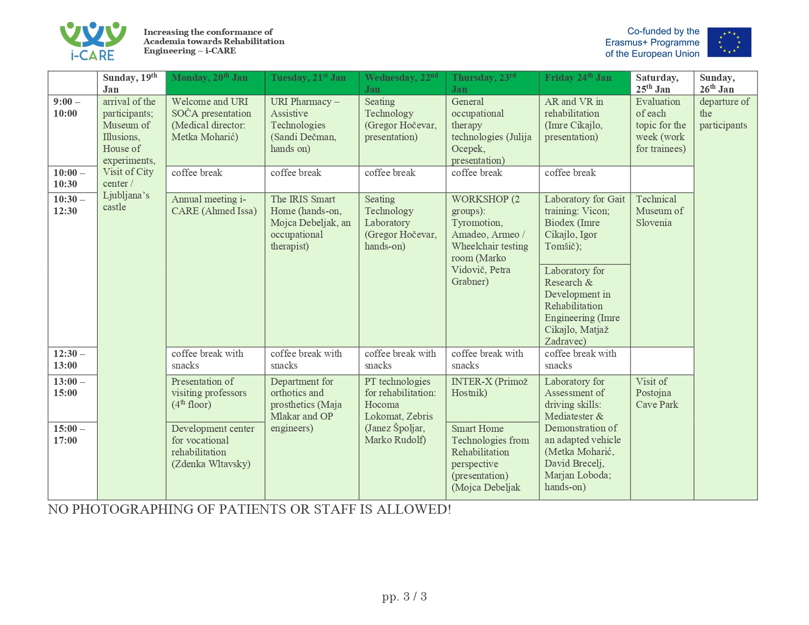 Advance rehabilitation engineering training in Slovenia for the Palestinian academics