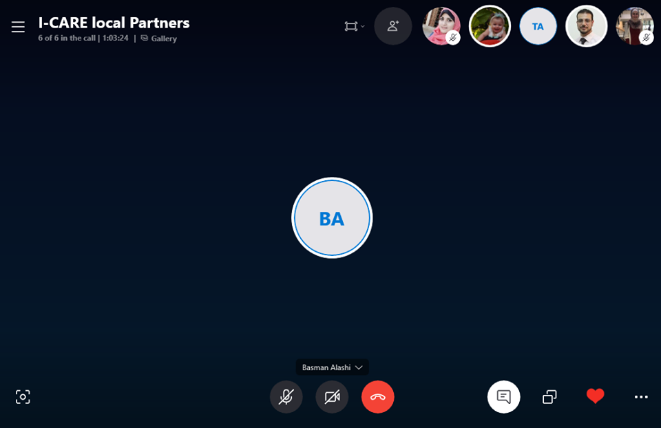 The local steering committee of i-CARE project was met virtually today to discuss the alternative plan for each activity during the COIVD-19 pandemic crisis. the partners who joined meeting Al Azhar University - Gaza, Islamic University of Gaza, University College of Applied Sciences, and El Wafa Medical of Rehabilitation Hospital