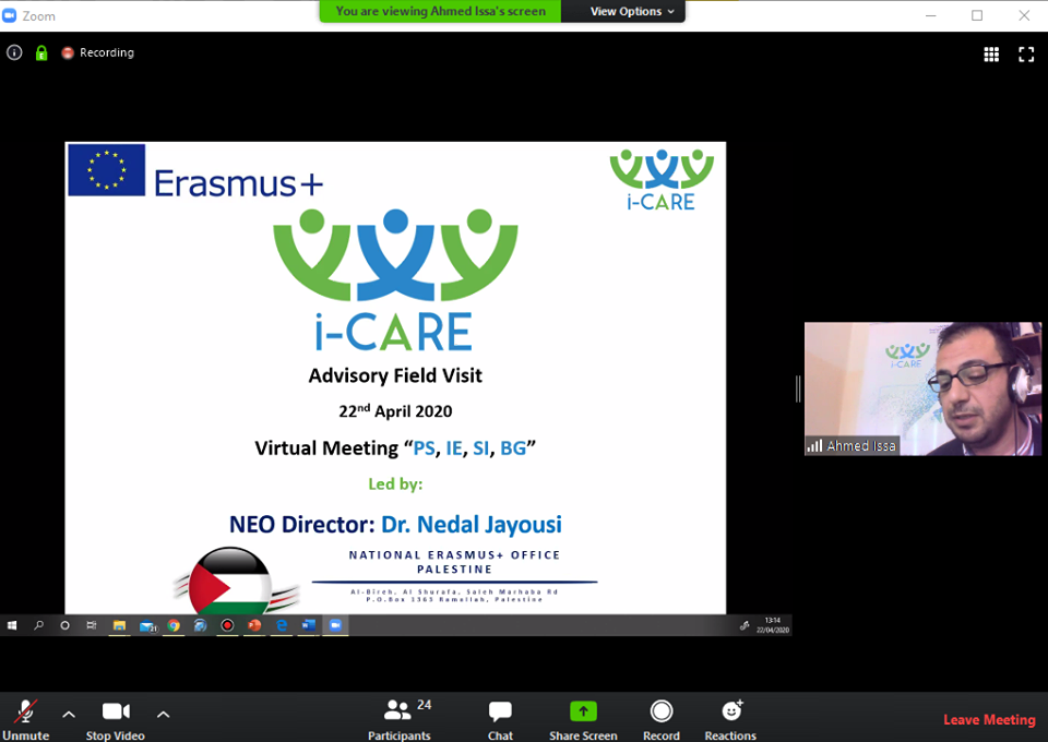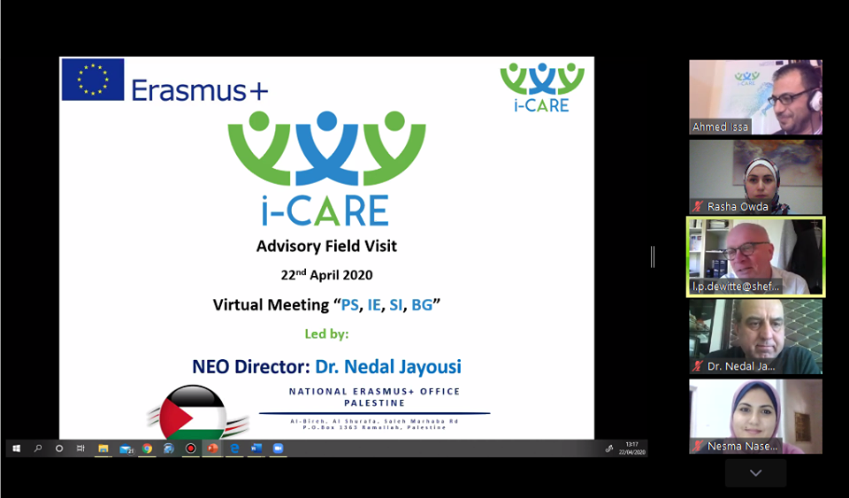 i-CARE underwent a Virtual Advisory Field Monitoring Visit led by the Director of National Erasmus office - Palestine, Dr. Nedal Jayousi.