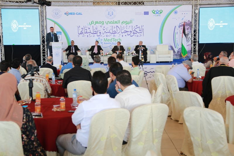 In partnership with the (MED-CAL) project, i-CARE project launched the activities of MedTech Scientific day and Expo, in the presence of Prof. Dr. Omar Milad, President of the University, Vice-Presidents of the University, many members of the University Council, Dr. Mazen Abu Amr, Dean of the Faculty of Engineering and Information Technology, and Prof. Dr. Riad Al-Khudari, representative of the Higher Council for Innovation and Excellence, Dr. Muhammad Aqel, project manager (MED-CAL), Dr. Ahmed Issa, project manager (I-CARE), representatives of partner universities, and representatives of relevant local and international institutions, in the tourist chalets resort on the seashore of Gaza City.